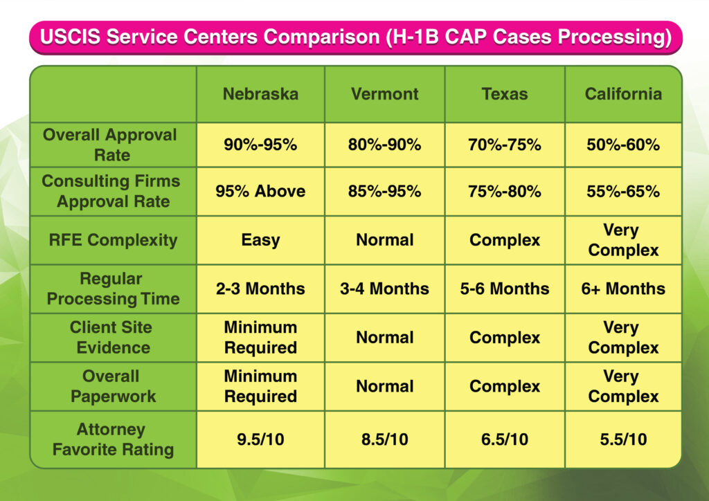 As per the previous years’ statistics from USCIS, the following information would really help to understand all four USCIS Service Centers.